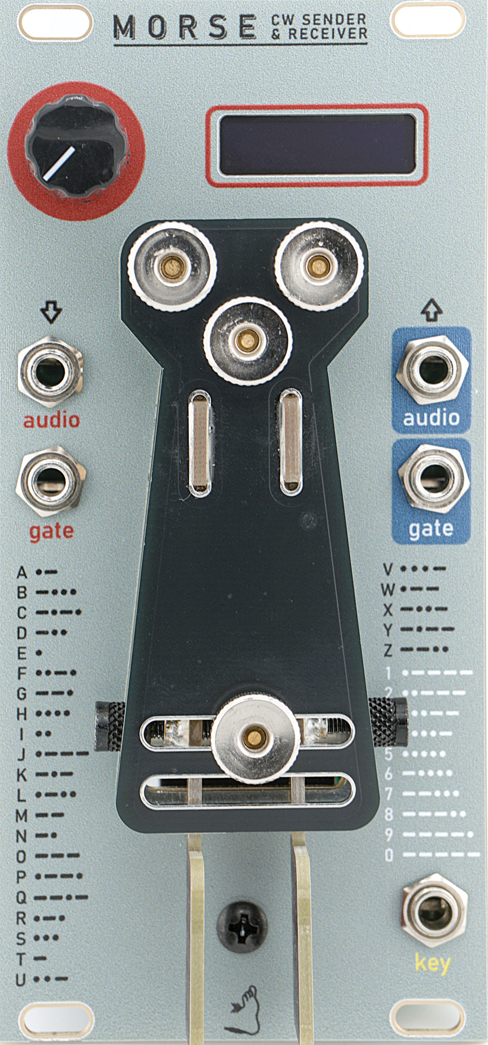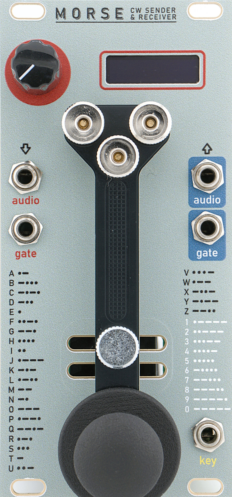 From traditional keying practice and message playback to live audio decoding and spectrum analysis, MORSE is as versatile as it is unique. Use the built-in paddle or straight key, connect your own external key, or trigger it via gates and audio inputs. With both audio and gate outputs, it integrates seamlessly into creative, rhythmic, and experimental patches.